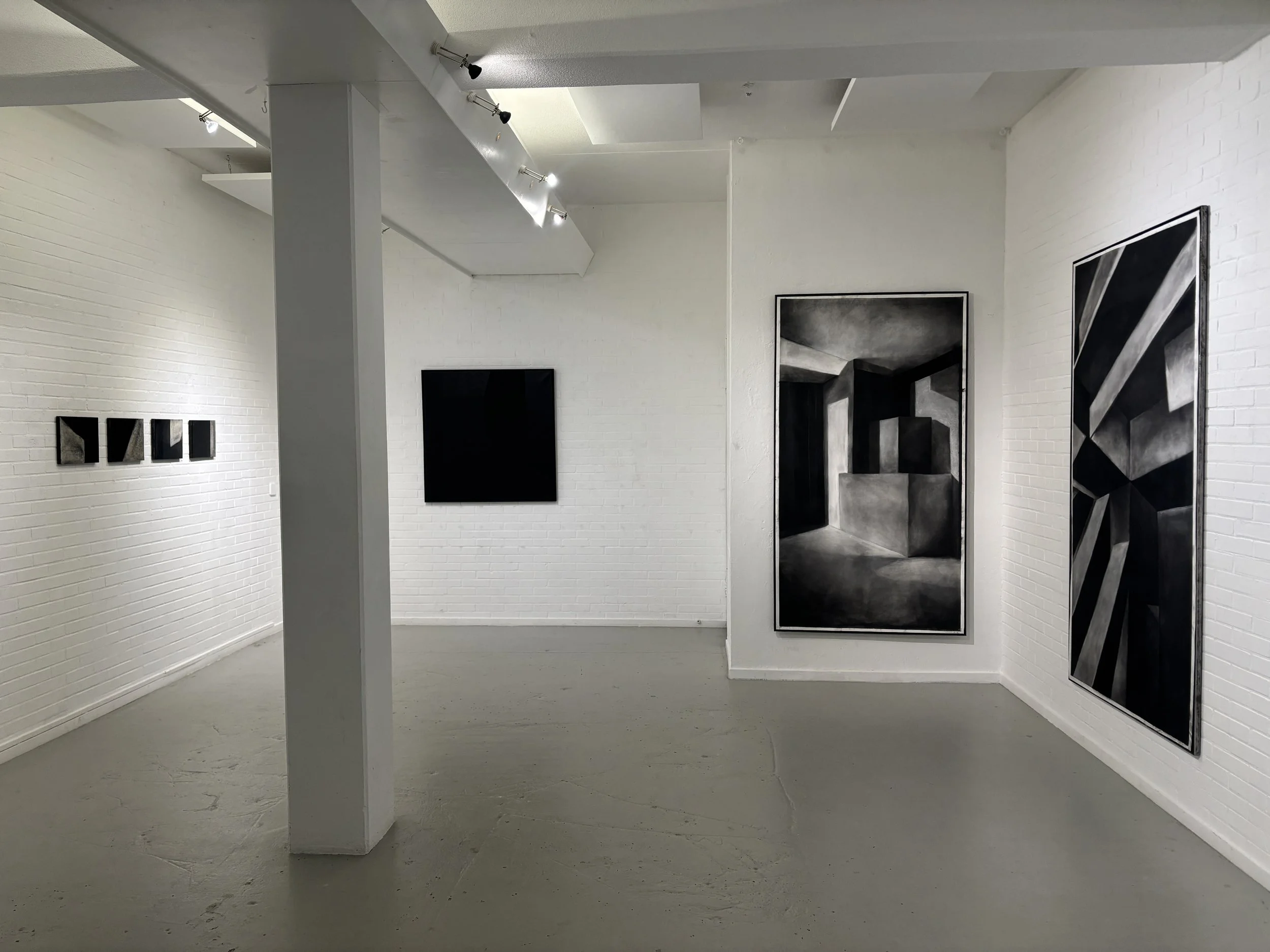 Galerie Noord in Groningen bestaat uit een rechthoekige ruimte met rechthoekige inspringingen en een witte pilaar midden in een ruimte van witte wanden. De Tolberter kunstenaar Jeffrey Linker werkt daarentegen met zwart, met houtskool op papier, in kleine en wandgrote formaten.