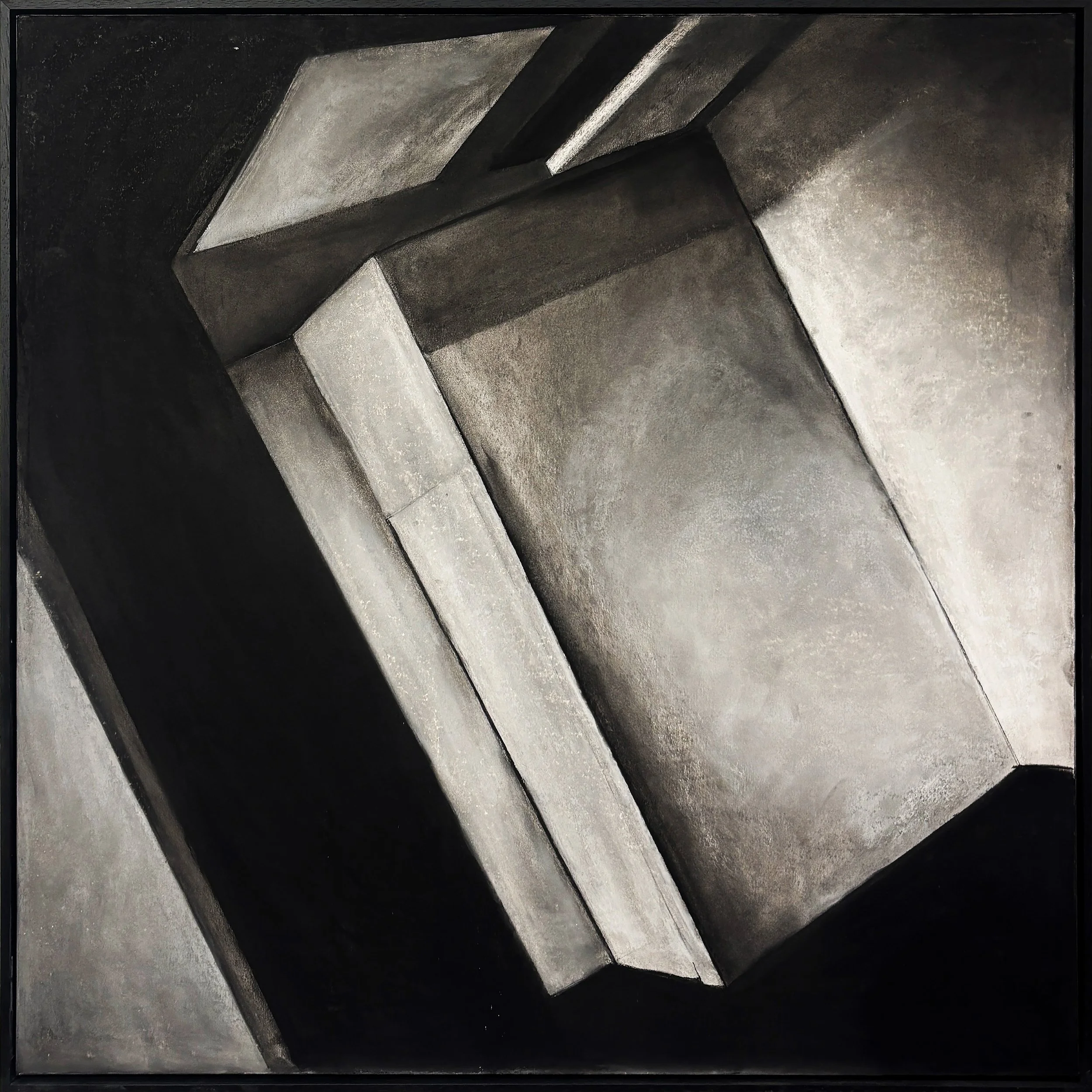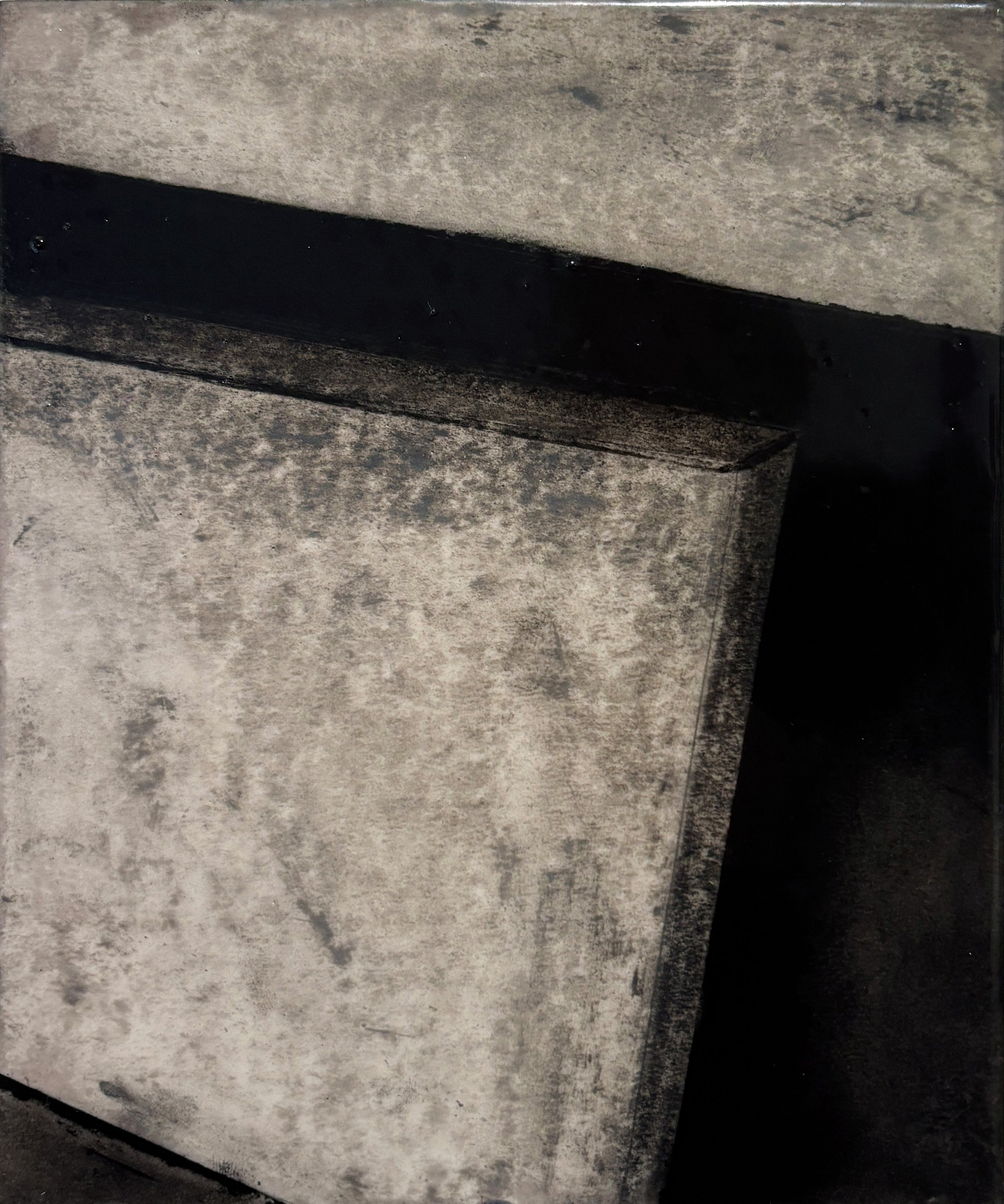 Houtskool op 300 grams aquarelpapier, gegoten in in kunststof